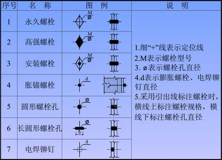 ★ 螺栓、孔、电焊铆钉图例