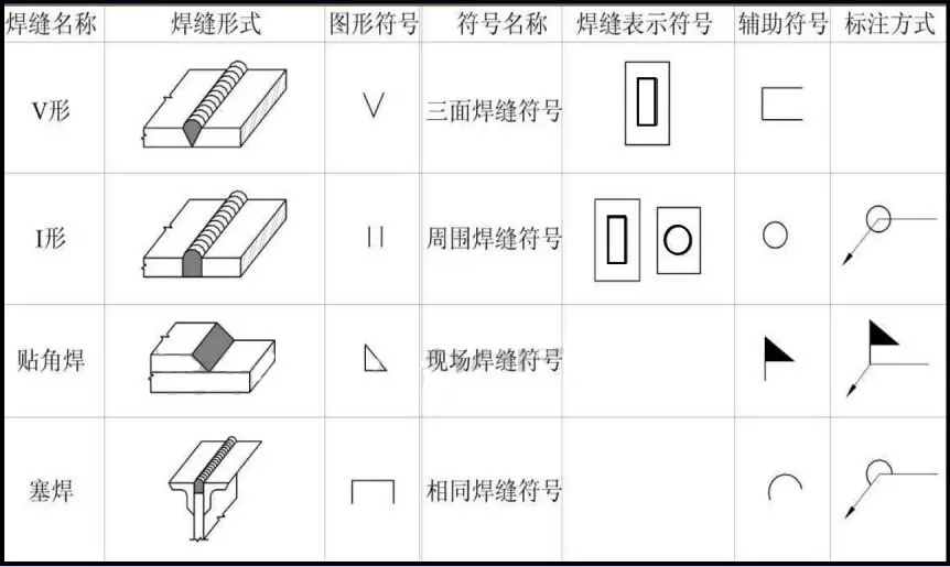 在钢结构图中,必须把焊缝的位置、形式、尺寸和辅助要求标准清楚。