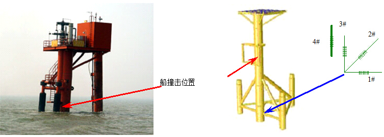 光纤光栅传感器灵敏地监测到了船撞击甚至海浪冲击平台主立柱底部的应变变化。光纤光栅传感器所测到的基频值与加速度传感器的结果一致;根据所布置的光纤光栅应变花,我们可以精确得出船撞击的主方向。数据结果表明,光纤光栅具有灵敏度高、抗腐蚀能力强、耐久性好的优点,非常适合于海洋工程结构的长期健康监测。